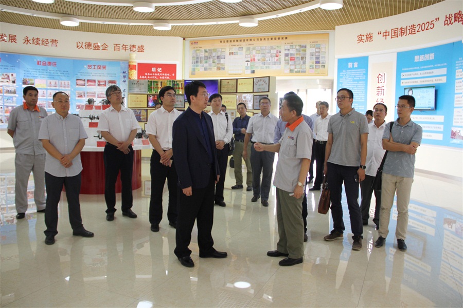 9月28日,省民營(yíng)企業(yè)高質(zhì)量發(fā)展服務(wù)2隊(duì)隊(duì)長(zhǎng)鄭立波一行10人,由青島市工商聯(lián)劉傳華秘書長(zhǎng)陪同來公司開展調(diào)研和對(duì)接,我公司董事長(zhǎng)孫佩璋、黨委書記潘勝利、總經(jīng)理張海德、管理總監(jiān)李建平陪同。服務(wù)隊(duì)的各位領(lǐng)導(dǎo)參觀了科技文化館、信息化系統(tǒng)管理平臺(tái)、各生產(chǎn)車間。最后,在公司培訓(xùn)中心現(xiàn)場(chǎng)聽取我公司發(fā)展情況匯報(bào),對(duì)我公司在新舊動(dòng)能轉(zhuǎn)換、高質(zhì)量發(fā)展等方面取得的成績(jī)給予高度評(píng)價(jià),雙方就今后企業(yè)高質(zhì)量發(fā)展服務(wù)相關(guān)工作進(jìn)行了初步探討交流。
