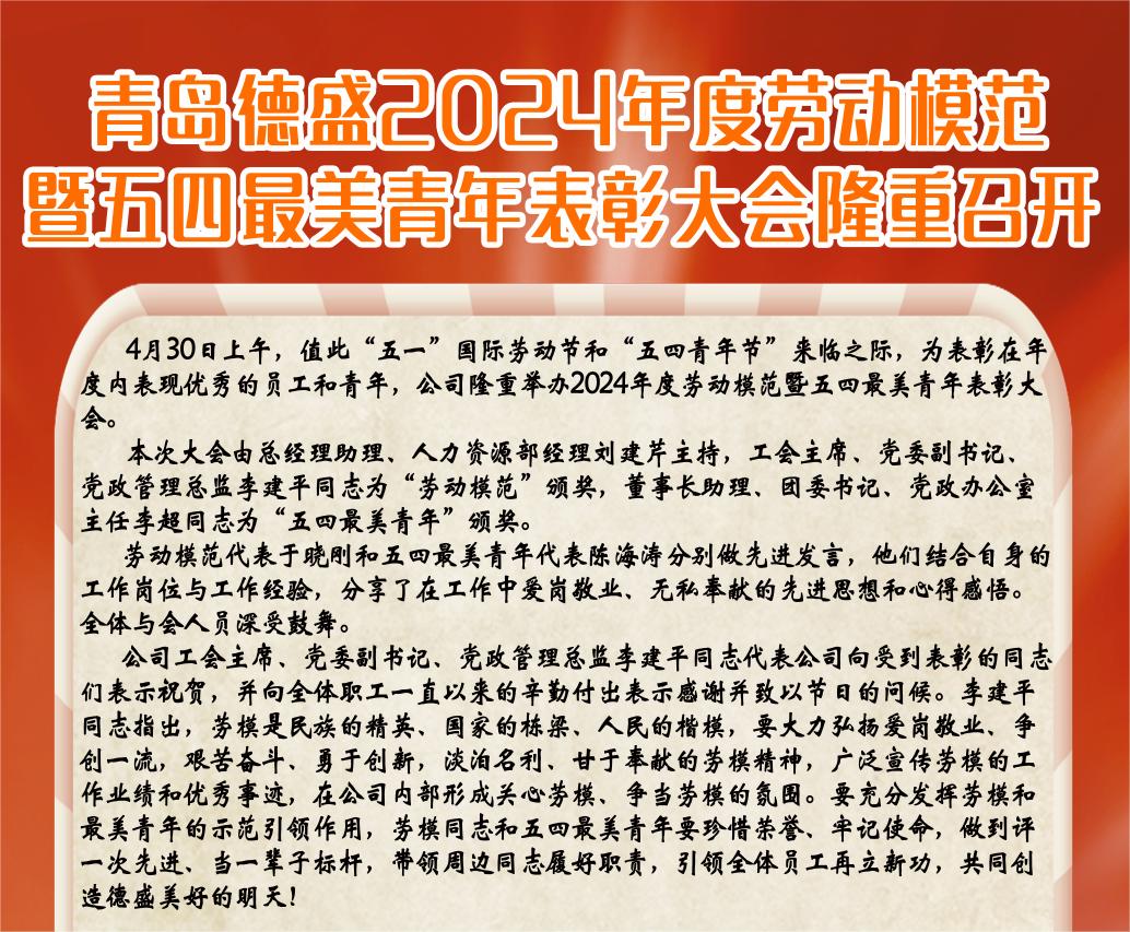 青島德盛2024年度勞動(dòng)模范暨五四最美青年表彰大會(huì)隆重召開(kāi)